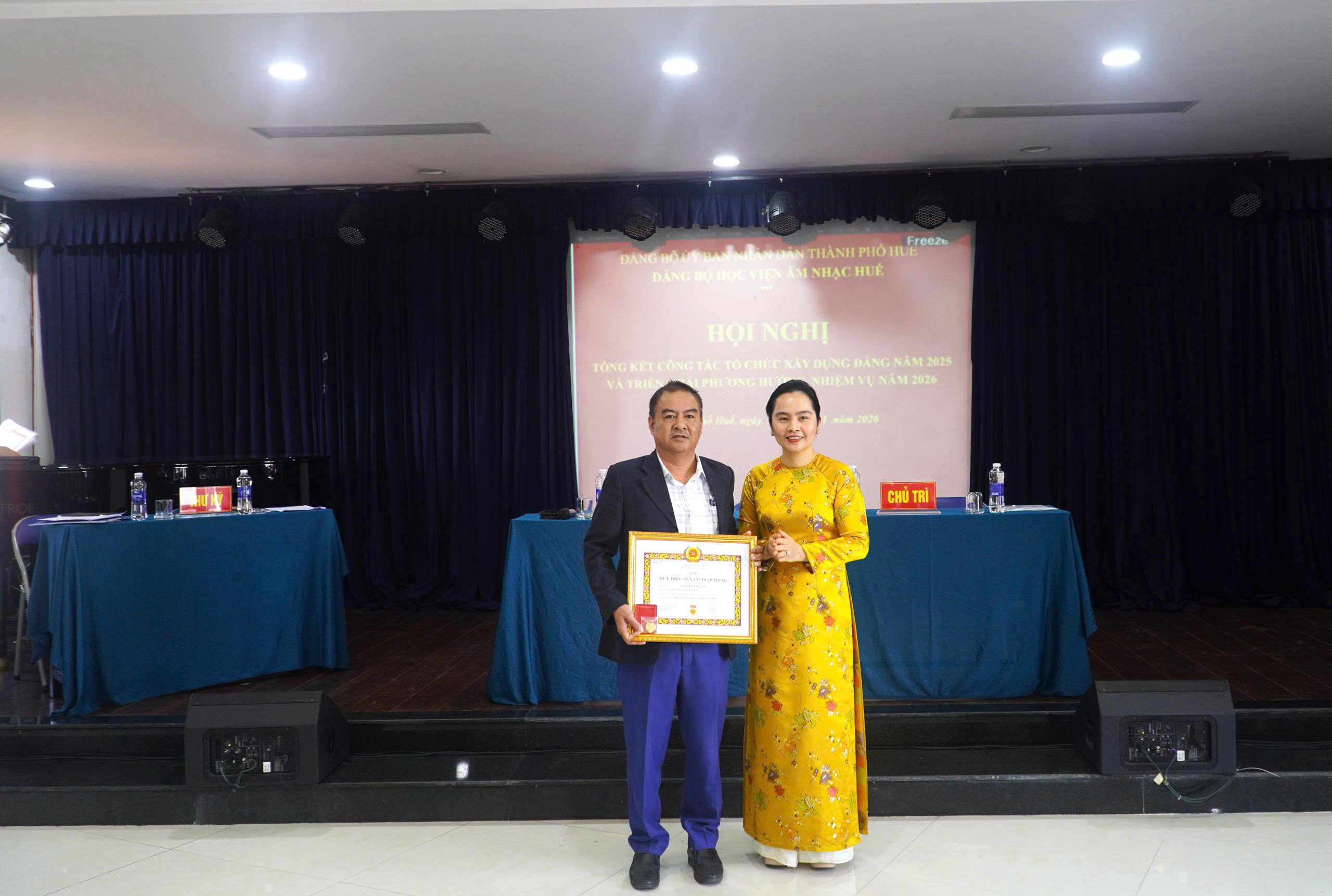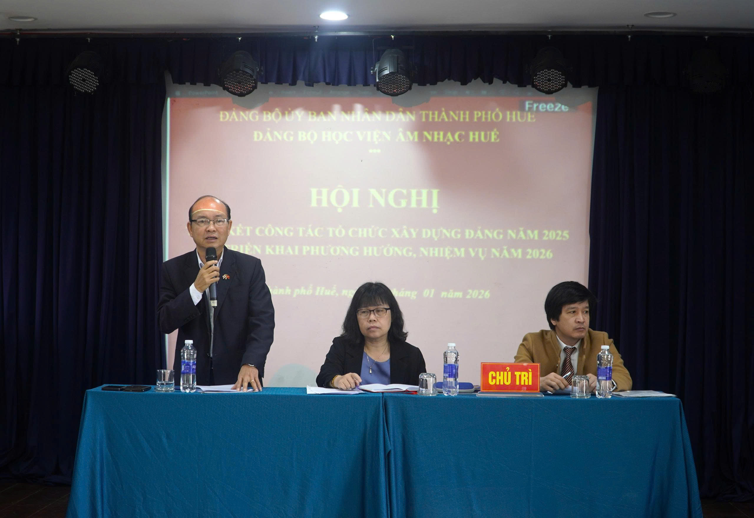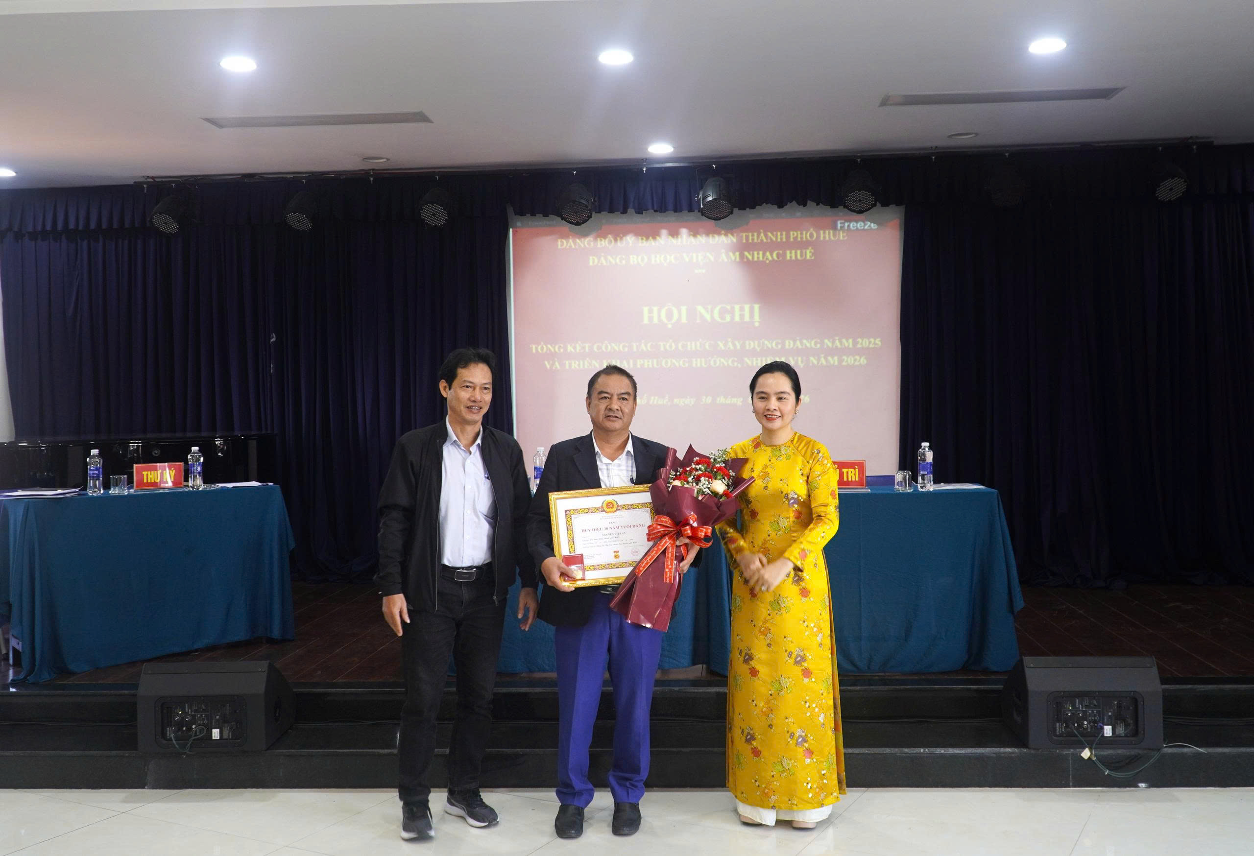 Thực hiện kế hoạch công tác năm 2025, sáng ngày 30/01/2026, Đảng bộ Học viện Âm nhạc Huế (Học viện) tổ chức Hội nghị tổng kết công tác tổ chức xây dựng Đảng năm 2025 và triển khai phương hướng, nhiệm vụ năm 2026. Tham dự và chỉ đạo Hội nghị có đồng chí Đinh Thị Như Hiền, Thành ủy viên, Phó Bí thư chuyên trách Đảng ủy UBND thành phố Huế, đại diện các Ban đảng, cùng toàn thể đảng viên của Đảng bộ.