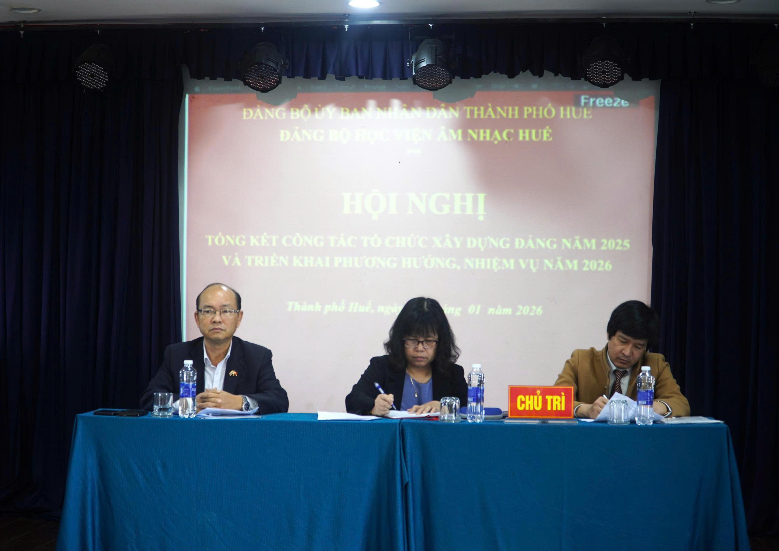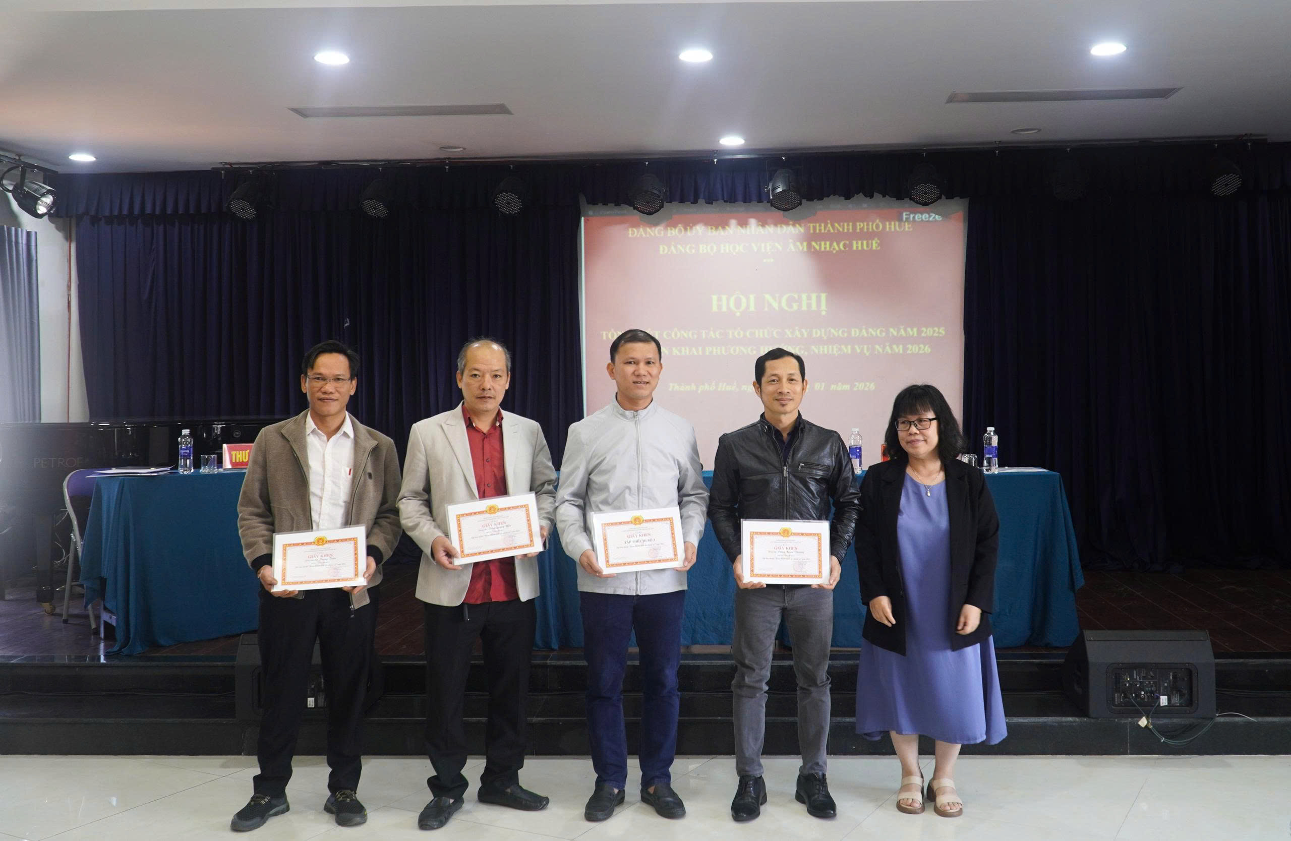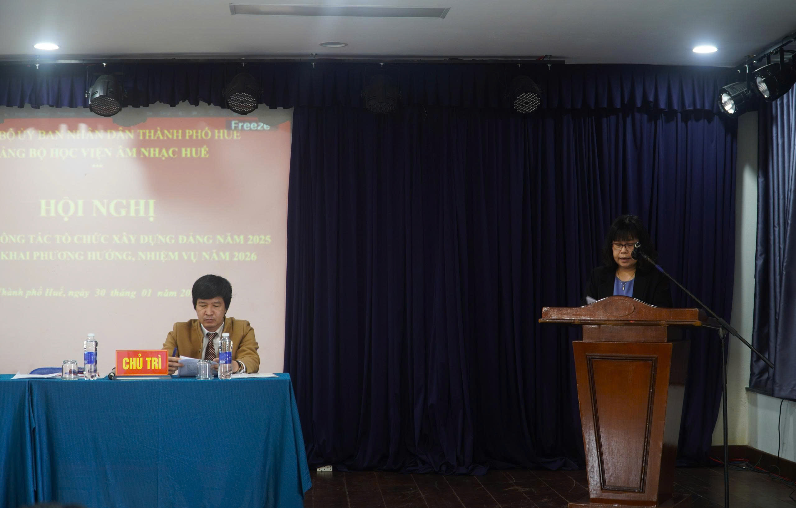 Thực hiện kế hoạch công tác năm 2025, sáng ngày 30/01/2026, Đảng bộ Học viện Âm nhạc Huế (Học viện) tổ chức Hội nghị tổng kết công tác tổ chức xây dựng Đảng năm 2025 và triển khai phương hướng, nhiệm vụ năm 2026. Tham dự và chỉ đạo Hội nghị có đồng chí Đinh Thị Như Hiền, Thành ủy viên, Phó Bí thư chuyên trách Đảng ủy UBND thành phố Huế, đại diện các Ban đảng, cùng toàn thể đảng viên của Đảng bộ.