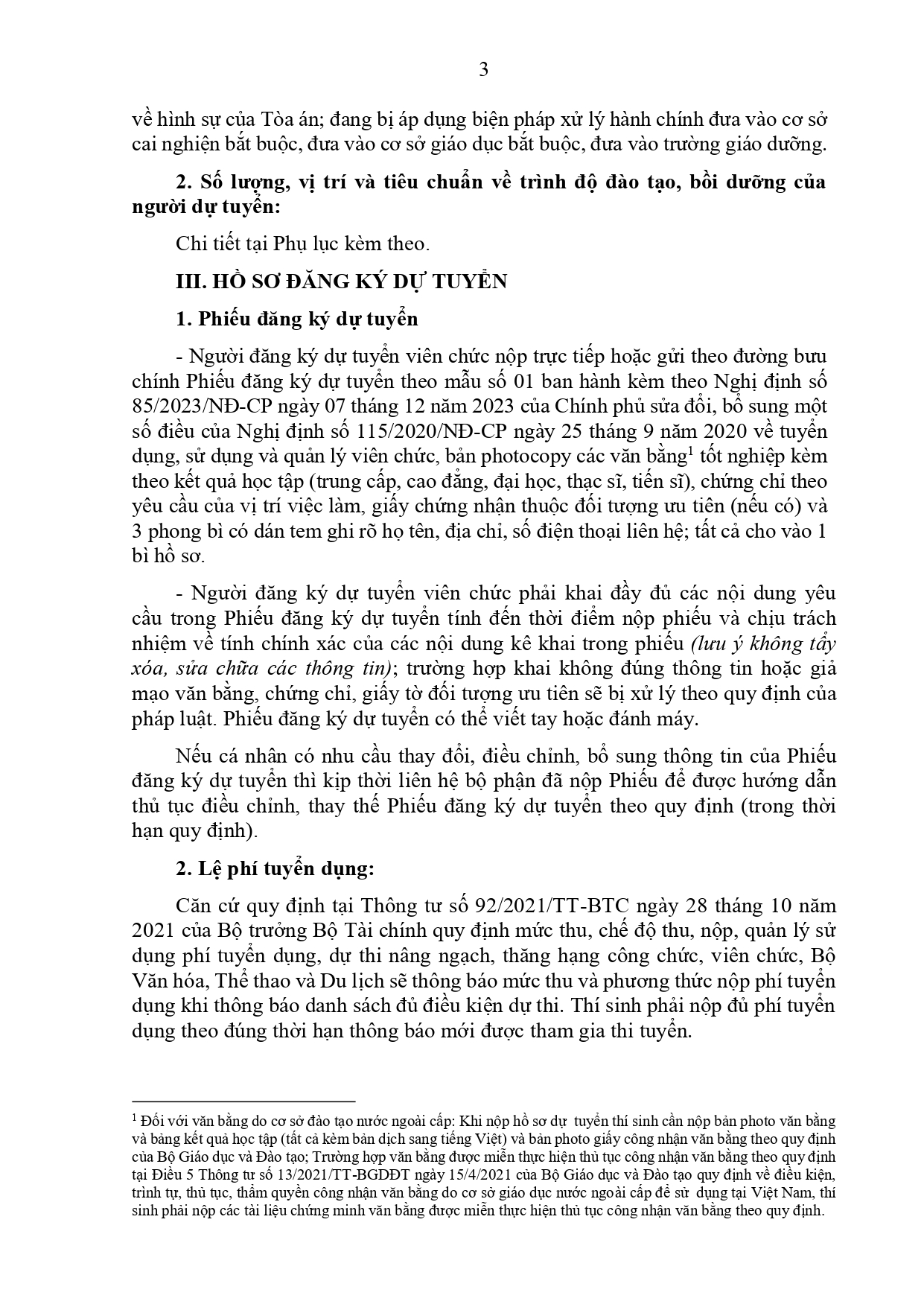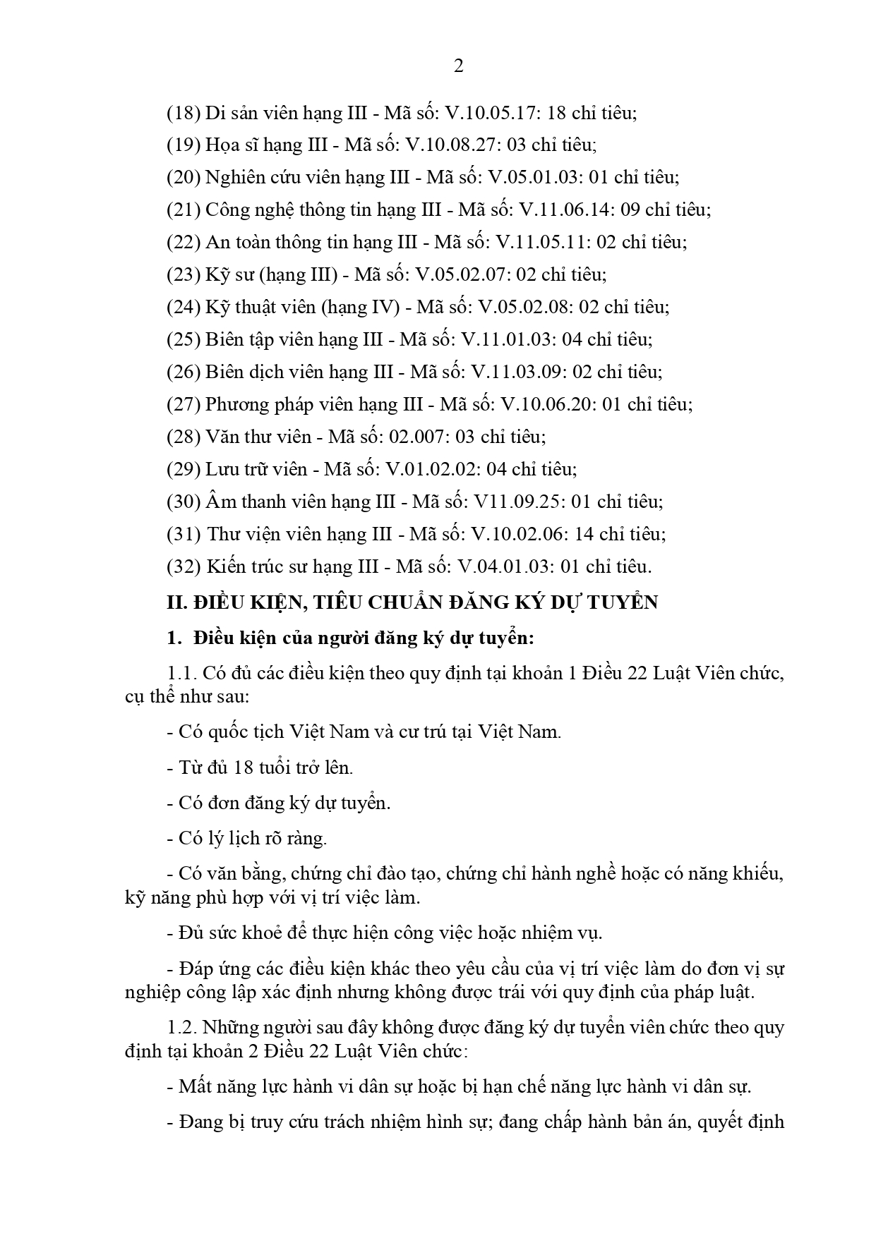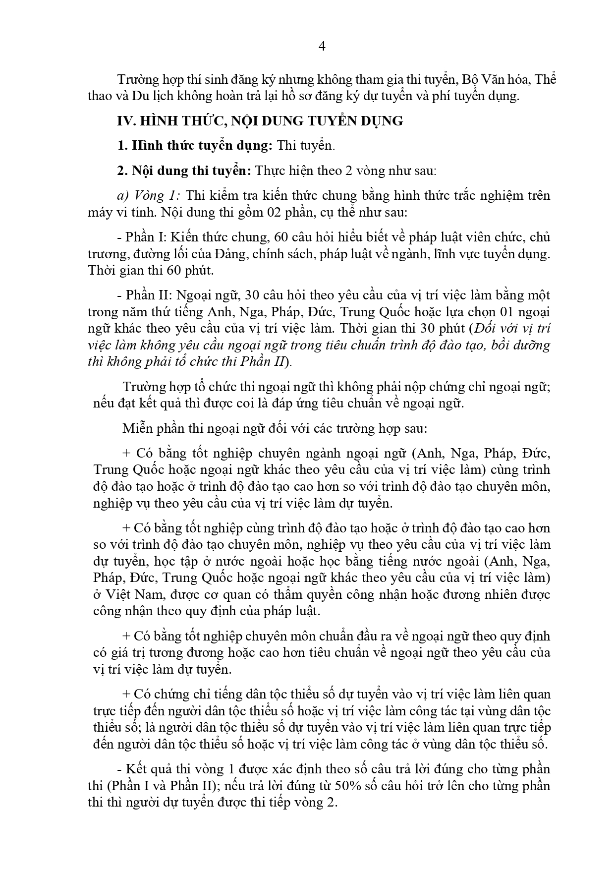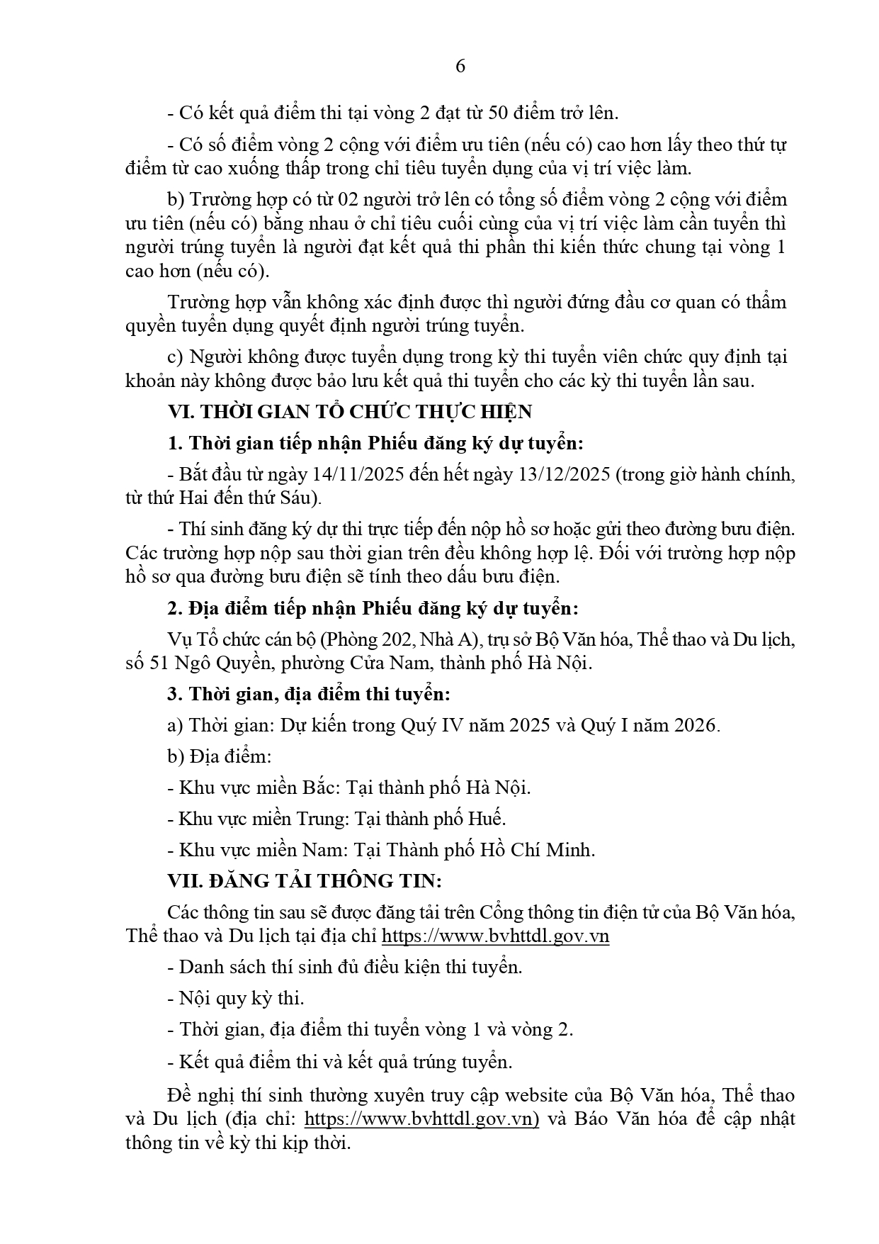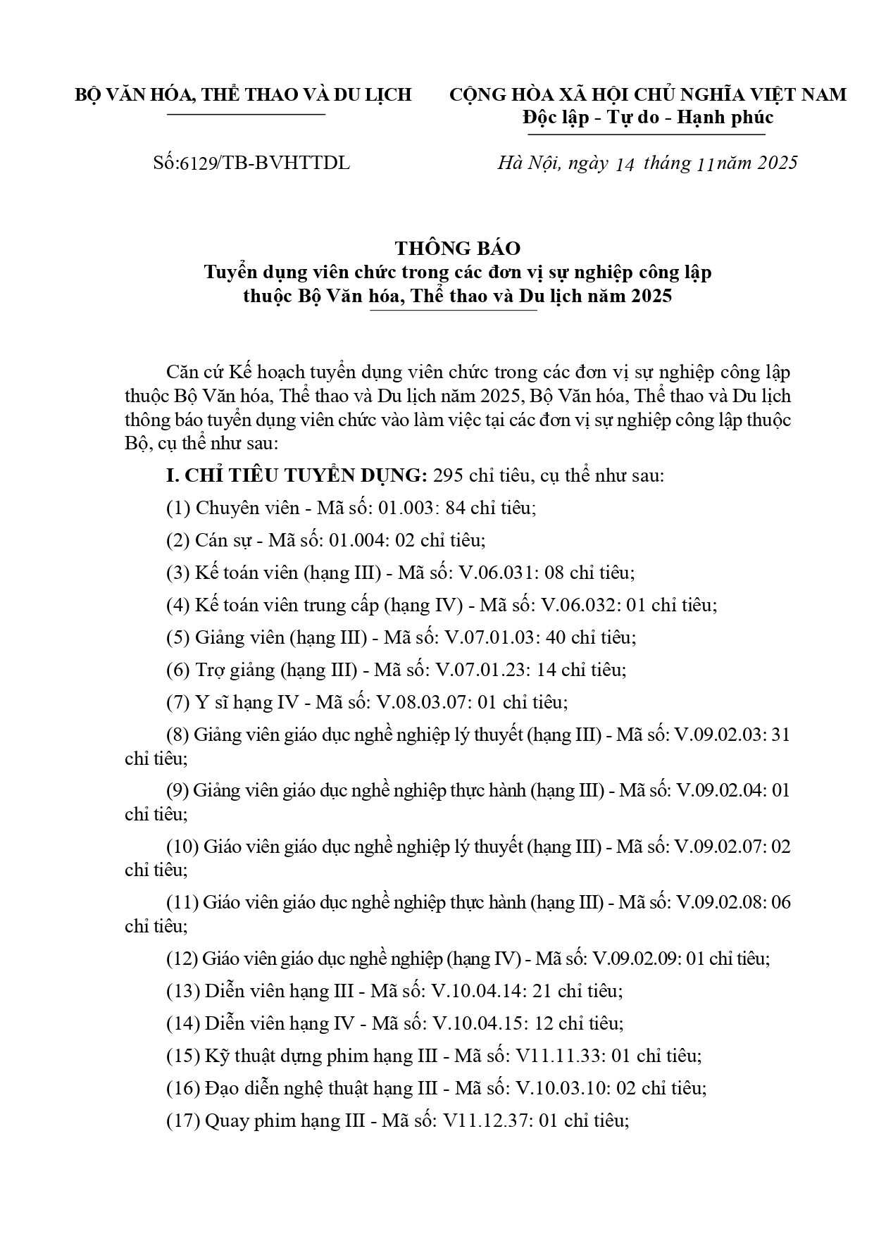 Thông báo tuyển dụng viên chức trong các đơn vị sự nghiệp công lập thuộc Bộ văn hóa, thể thao và Du lịch năm 2025